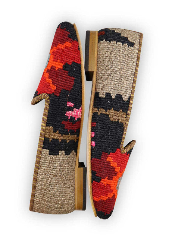 Kilims are a style of textile traditionally crafted on Turkey's Anatolian peninsula, primarily woven from wool on a cotton ground. Kilims are flat-woven, featuring a thin, tight weave that make them a perfect textile for crafting shoes and accessories. Every symbol, color, and pattern woven into the Kilim has meaning and represents a hope, a dream, or a story from the life of the weaver.
