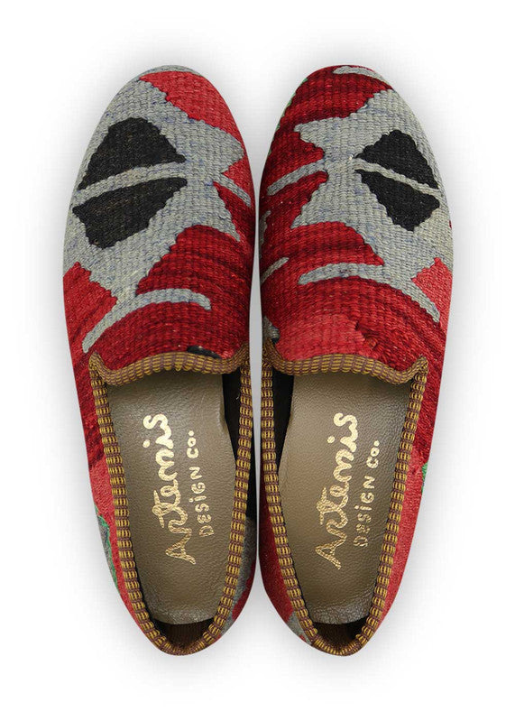Kilims are a style of textile traditionally crafted on Turkey's Anatolian peninsula, primarily woven from wool on a cotton ground. Kilims are flat-woven, featuring a thin, tight weave that make them a perfect textile for crafting shoes and accessories. Every symbol, color, and pattern woven into the Kilim has meaning and represents a hope, a dream, or a story from the life of the weaver.