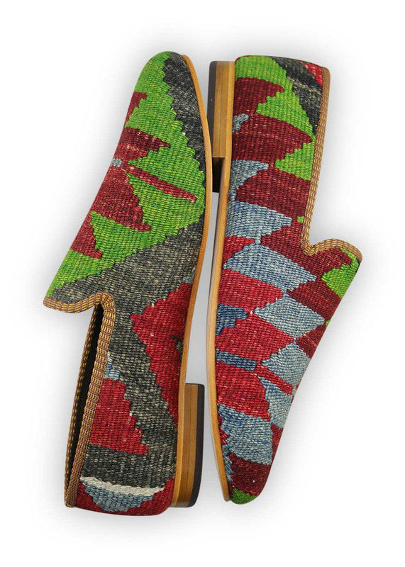 Kilims are a style of textile traditionally crafted on Turkey's Anatolian peninsula, primarily woven from wool on a cotton ground. Kilims are flat-woven, featuring a thin, tight weave that make them a perfect textile for crafting shoes and accessories. Every symbol, color, and pattern woven into the Kilim has meaning and represents a hope, a dream, or a story from the life of the weaver.