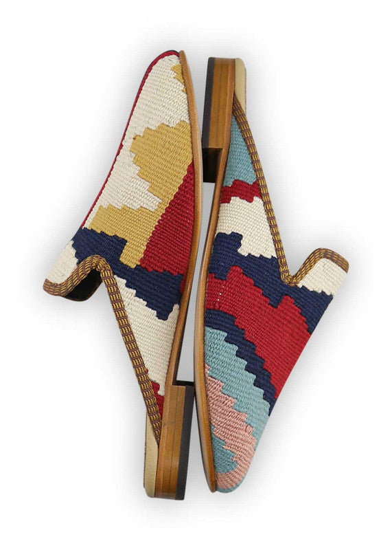 Kilims are a style of textile traditionally crafted on Turkey's Anatolian peninsula, primarily woven from wool on a cotton ground. Kilims are flat-woven, featuring a thin, tight weave that make them a perfect textile for crafting shoes and accessories. Every symbol, color, and pattern woven into the Kilim has meaning and represents a hope, a dream, or a story from the life of the weaver.