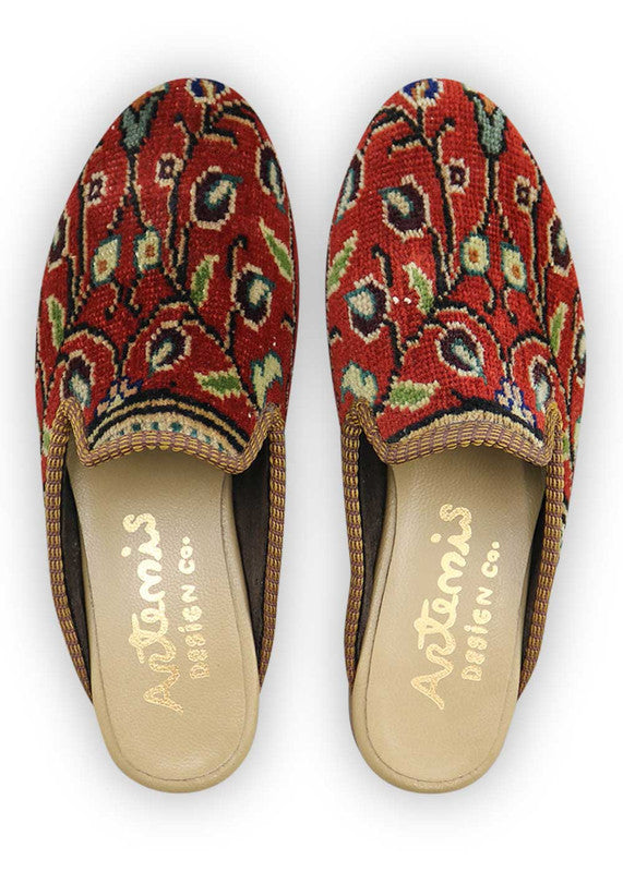Since our products are made from vintage textiles, each pair we make is completely unique! Even two pairs cut from the same carpet can look very different depending on placement of the pattern, borders vs. interior, etc.