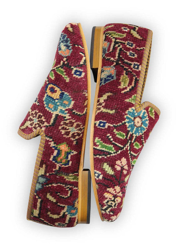 Since our products are made from vintage textiles, each pair we make is completely unique! Even two pairs cut from the same carpet can look very different depending on placement of the pattern, borders vs. interior, etc.