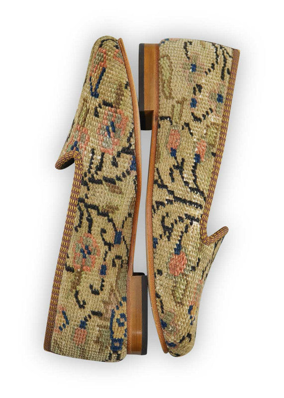 Since our products are made from vintage textiles, each pair we make is completely unique! Even two pairs cut from the same carpet can look very different depending on placement of the pattern, borders vs. interior, etc.