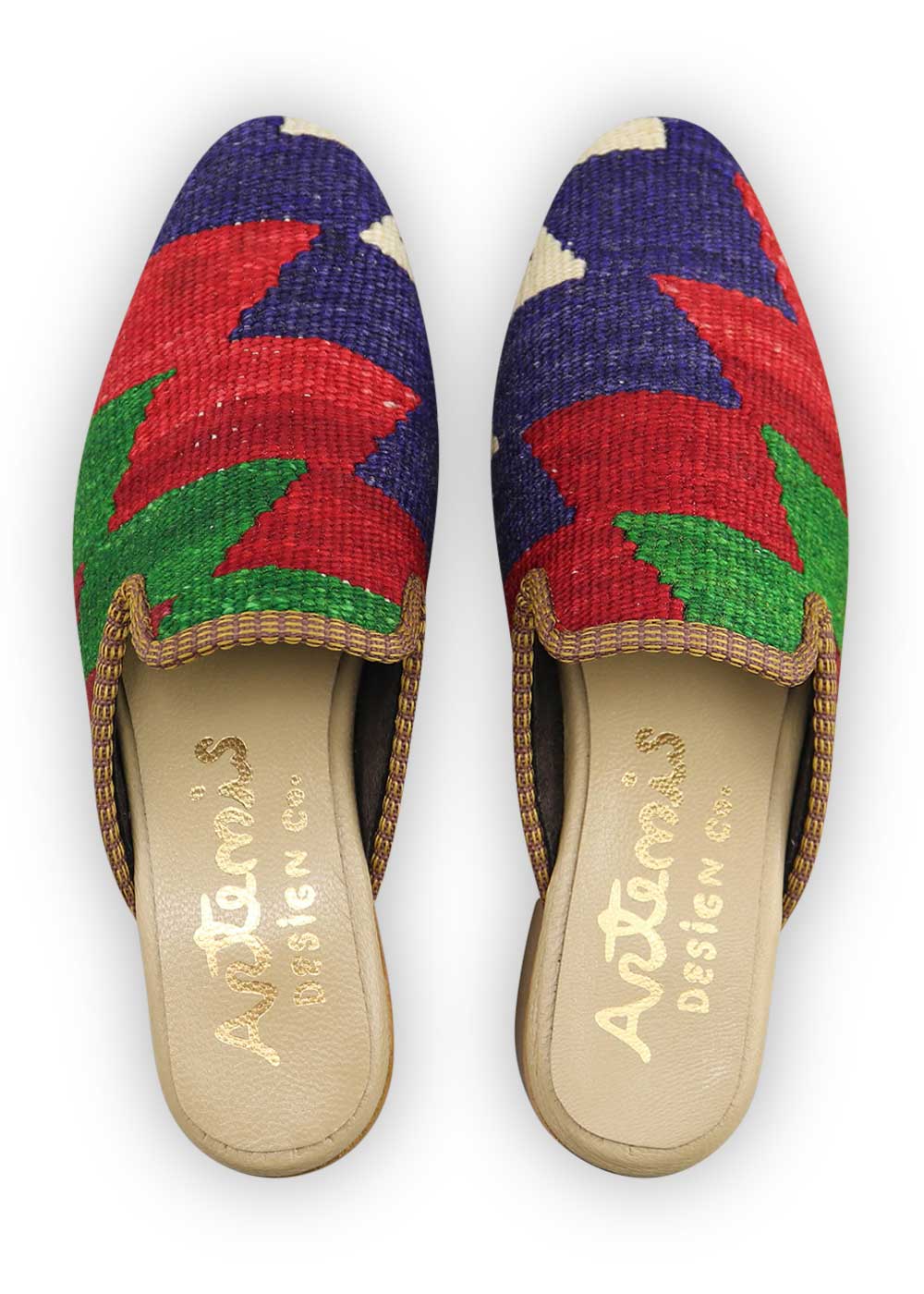 Kilims are a style of textile traditionally crafted on Turkey's Anatolian peninsula, primarily woven from wool on a cotton ground. Kilims are flat-woven, featuring a thin, tight weave that make them a perfect textile for crafting shoes and accessories. Every symbol, color, and pattern woven into the Kilim has meaning and represents a hope, a dream, or a story from the life of the weaver.