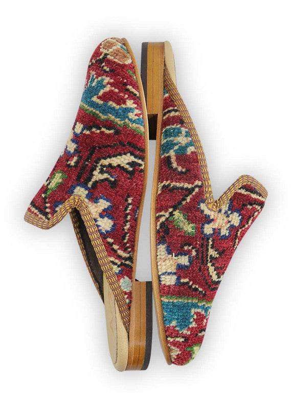 Since our products are made from vintage textiles, each pair we make is completely unique! Even two pairs cut from the same carpet can look very different depending on placement of the pattern, borders vs. interior, etc.