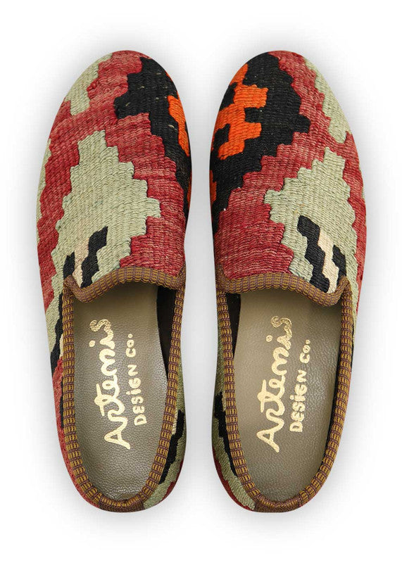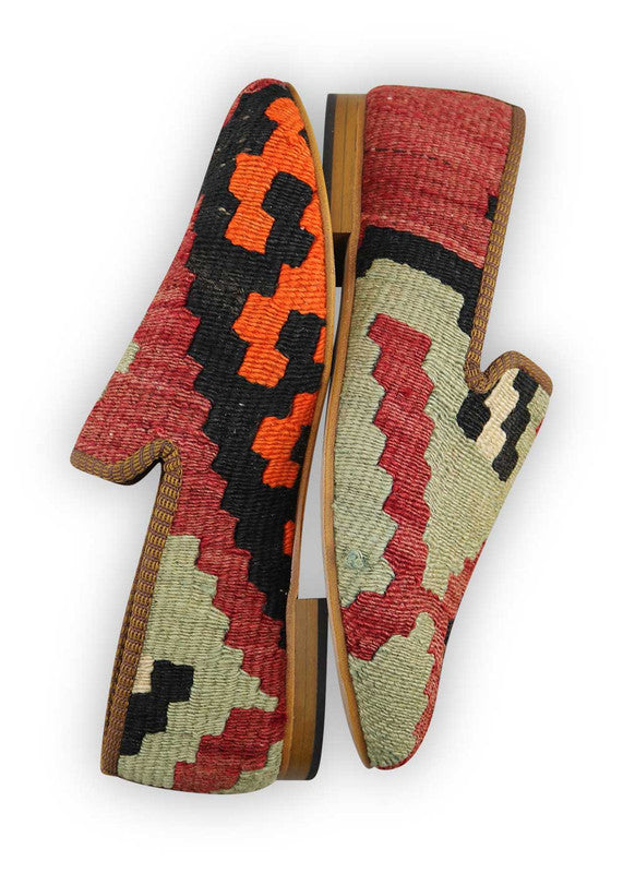 Kilims are a style of textile traditionally crafted on Turkey's Anatolian peninsula, primarily woven from wool on a cotton ground. Kilims are flat-woven, featuring a thin, tight weave that make them a perfect textile for crafting shoes and accessories. Every symbol, color, and pattern woven into the Kilim has meaning and represents a hope, a dream, or a story from the life of the weaver.
